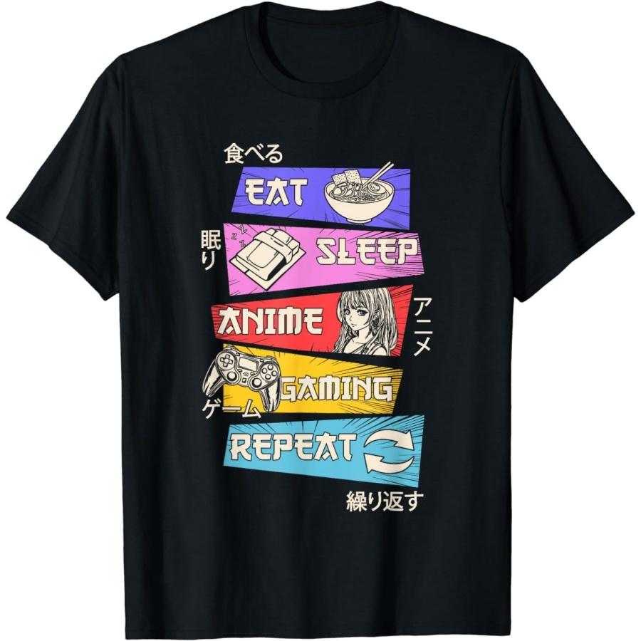 Хмель Ешь Спи Аниме Игры Повтор Отаку Геймер Японское Аниме Футболка