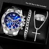 Мужские часы Geneva Blu-ray Glass Стальной ремешок Кварцевые часы Три циферблата Деловые Повседневные