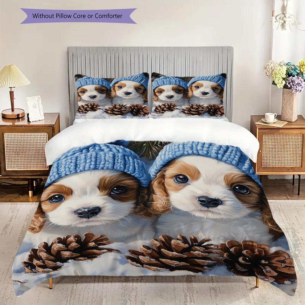 Puppy Pattern Bedding Quilt Set Quilt Cover Pillowcase Home Decoration Birthday Gift (1 * duvet cover + 2 * pillowcase, without core)