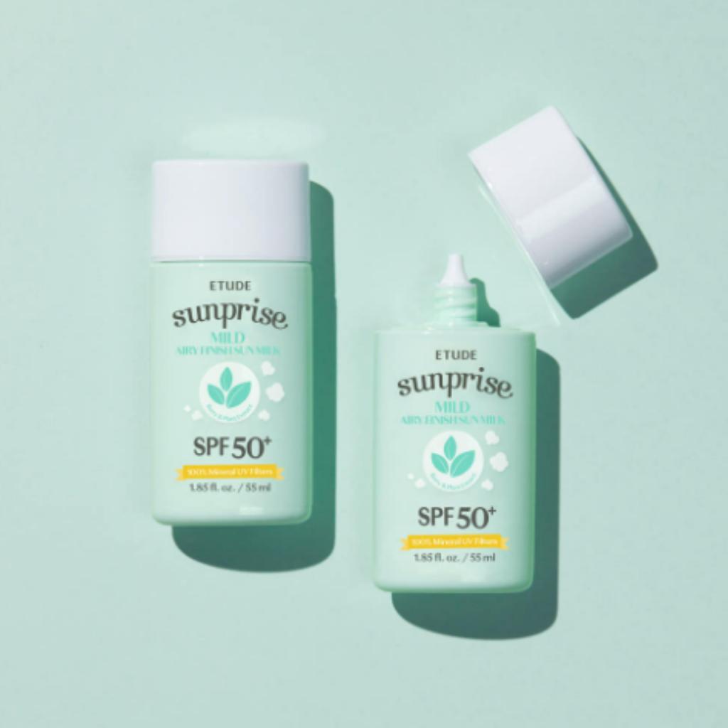 Etude Sunprise Mild Airy Finish Солнечное молочко SPF50+ PA++++ (55ml) – 100% Минеральный Фильтр, Нелипкое Матовое Покрытие