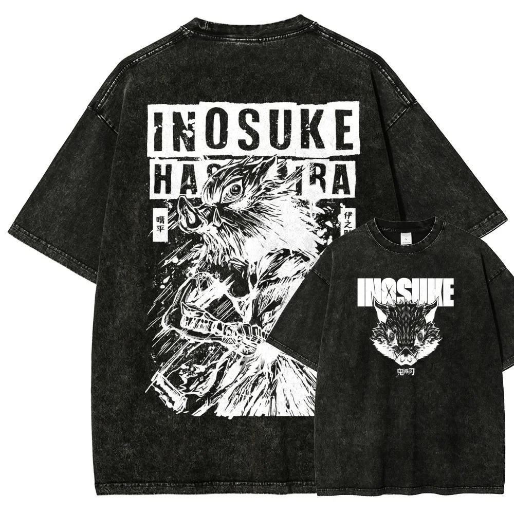 Футболка с принтом Хашибира Иноске Клинок, рассекающий демонов Аниме Оверсайз Одежда Мужчины Женщины Хлопковые Футболки Ретро Стирка Футболка Харадзюку Футболки Женская Мужская Одежда
