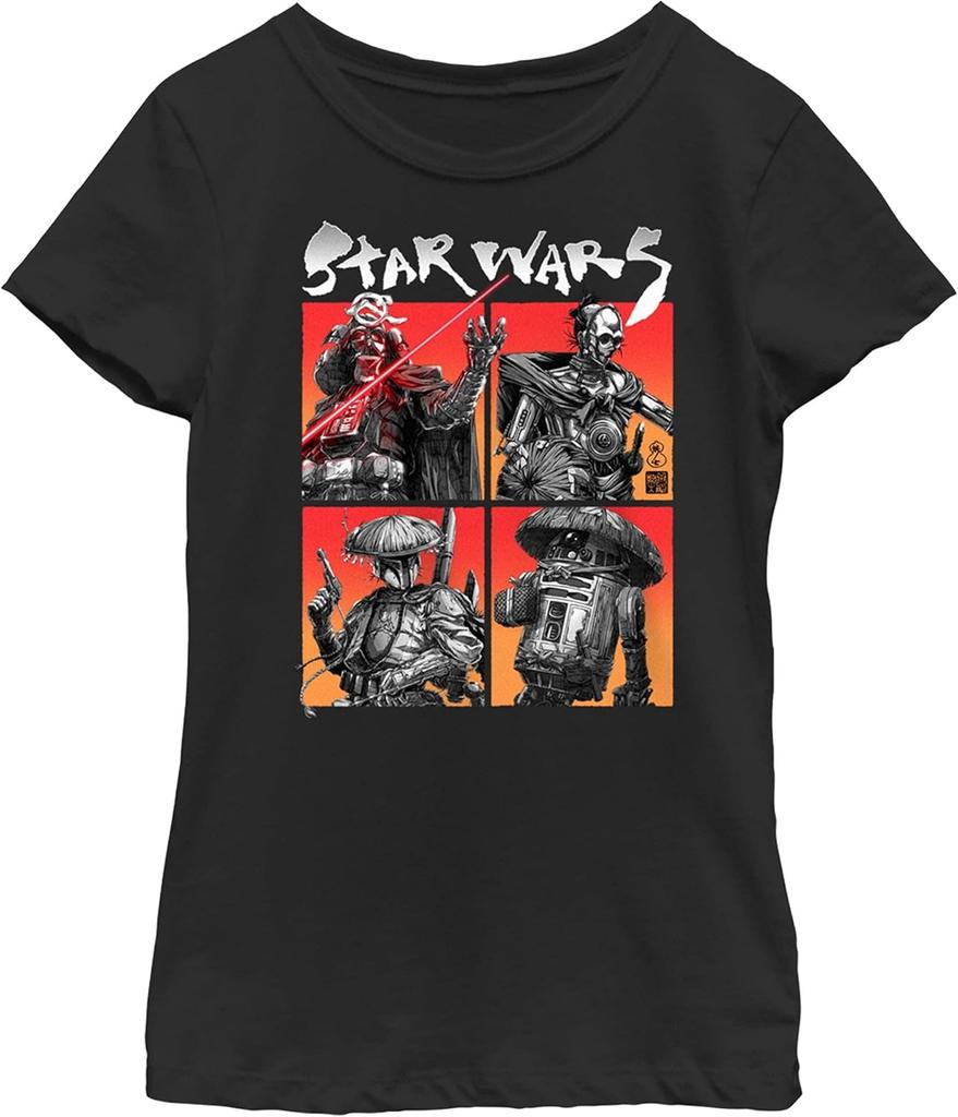 STAR WARS Visions Футболка с принтом 'Четверо на полу' для девочек, однотонная, с круглым вырезом