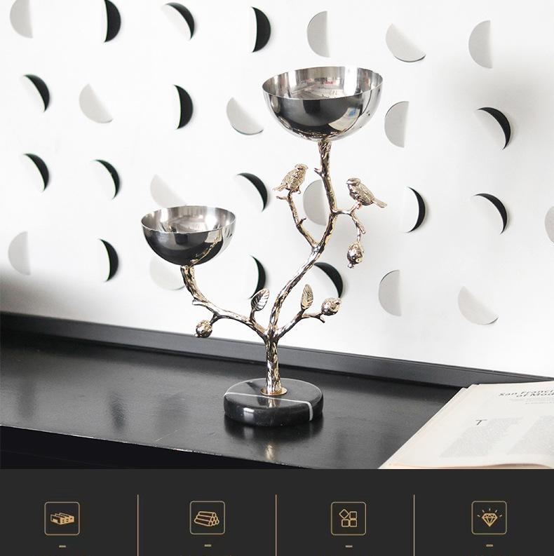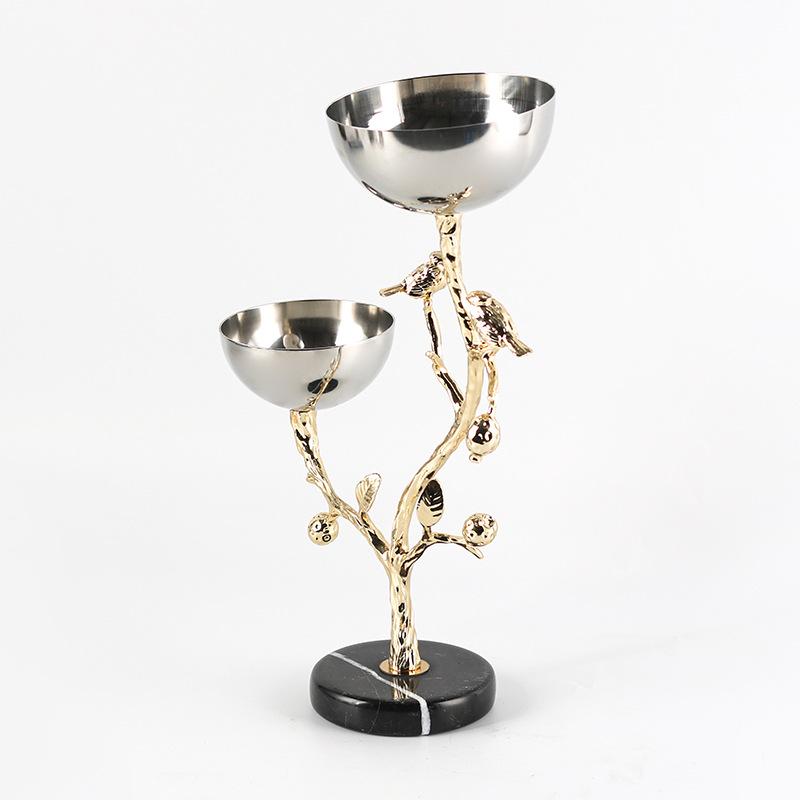 Металлический поднос Металлическая миска для закусок с ветвями и птицами Фруктовое блюдо Золотая птица Конфетница Аксессуары для украшения дома