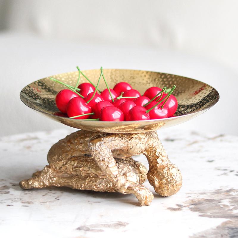 Поделка из смолы Настольный поднос для хранения Фруктовница Компот Золотая художественная фигура Коутоу Декоративные фигурки Украшение для дома