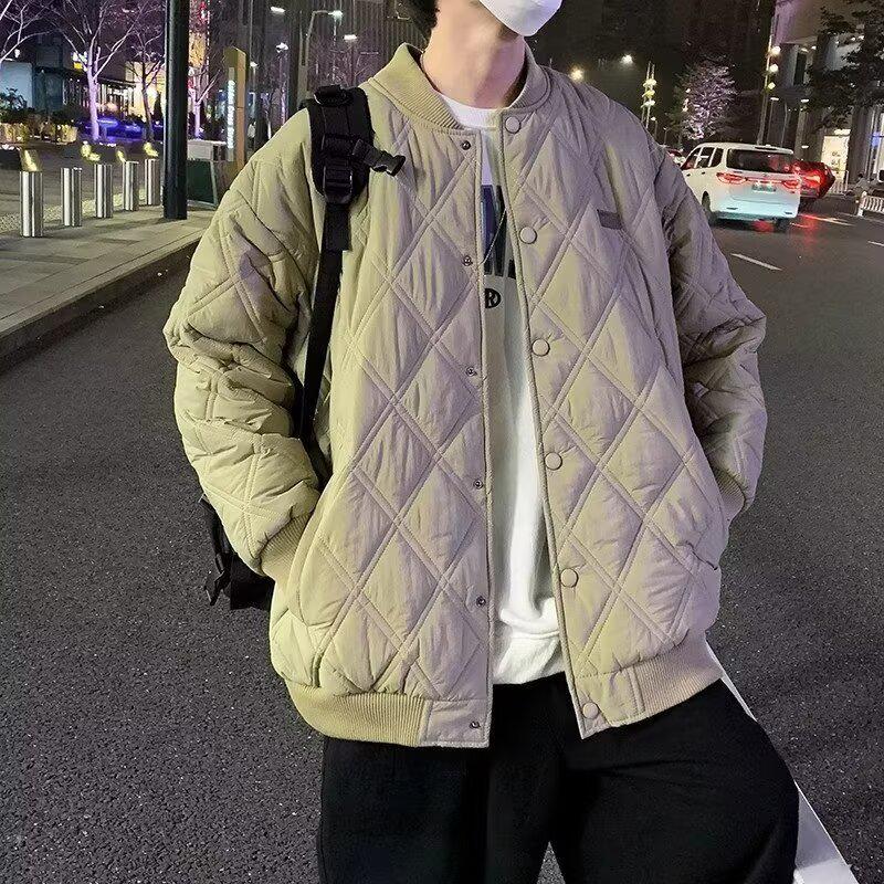 Мужская хлопковая куртка-бомбер с ромбовидной стежкой - Универсальная зимняя верхняя одежда в стиле Гонконга и колледжа — купить товар онлайн с бесплатной доставкой по всему миру!
