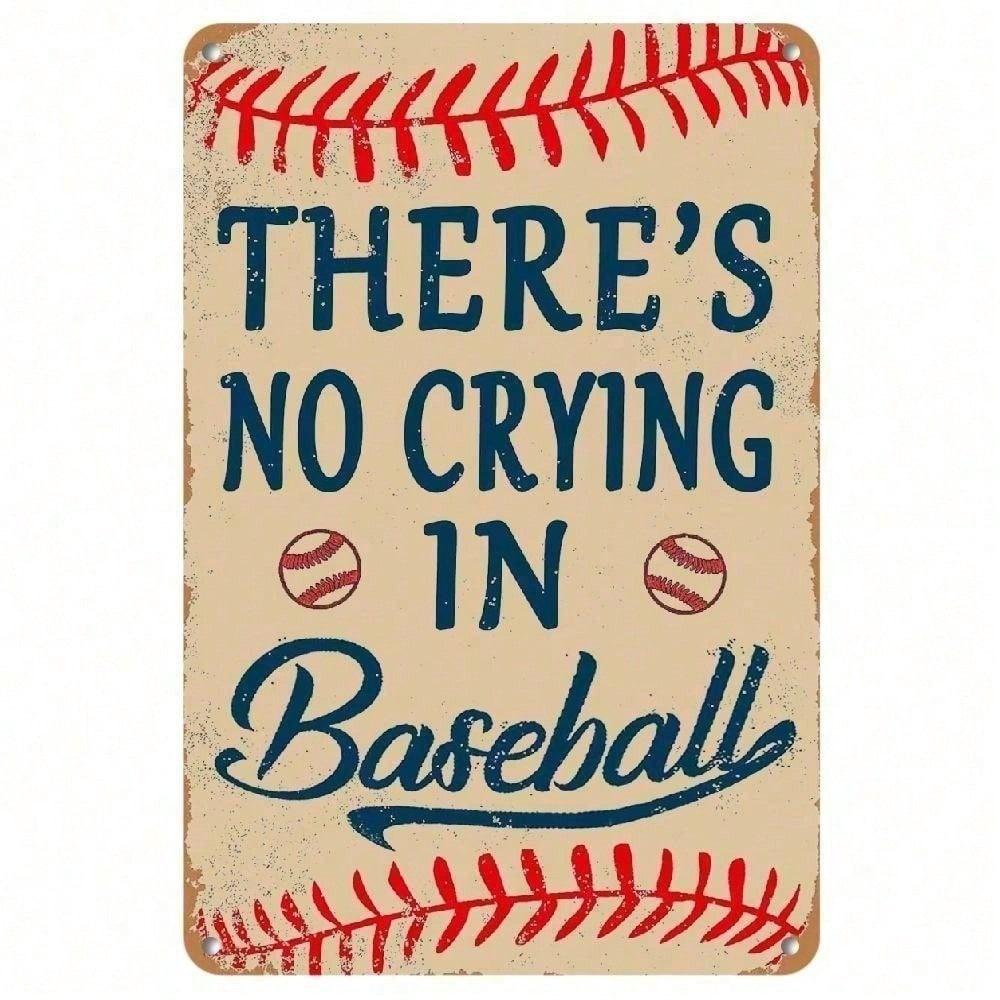 Battly Tin Sign NO CRYING IN BASEBALL Vintage Metal Wall Decor Rustic WeatherResistant Retro Plaque Art