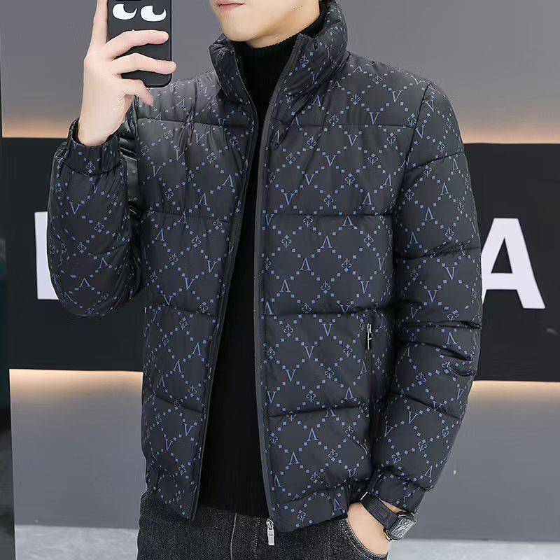 2026 Men's Trendy Stand Collar Full Print Down Jacket - Thick, Warm, Windproof, Cold-Resistant Outerwear