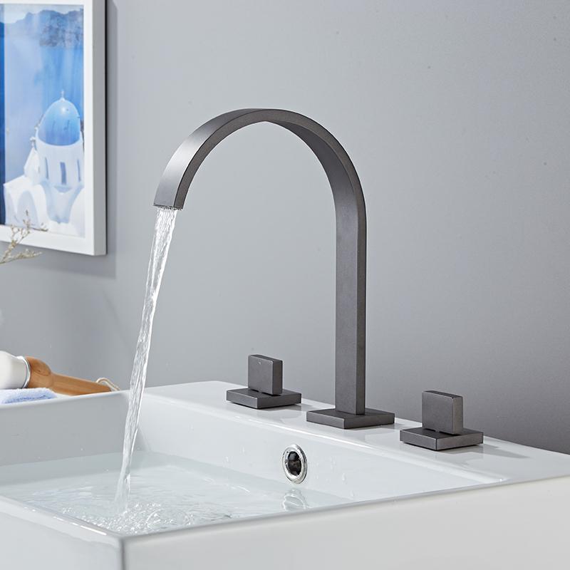 Смеситель для раковины Gun Grey Sink Tap Золотой квадратный латунный кран для ванной комнаты Смеситель для раковины с 3 отверстиями и двойной ручкой для горячей и холодной воды — купить товар онлайн с бесплатной доставкой по всему миру!