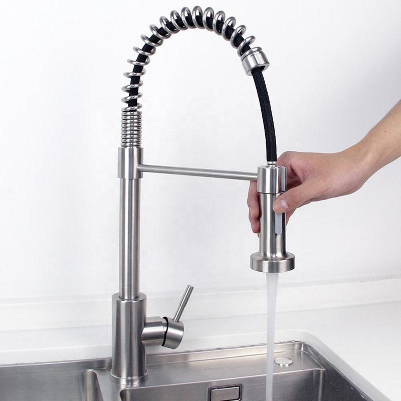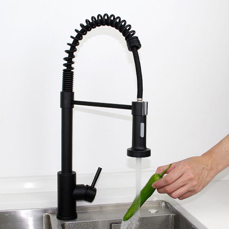 Никель/Черный Нержавеющая сталь 304 Выдвижной Смеситель для кухонной мойки Монтаж на столешницу Вращение на 360° Струя Распылитель Насадка Смеситель для кухонной мойки