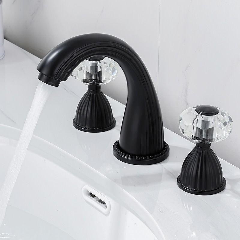 Золотая латунь Смеситель для раковины в ванной комнате, Монтаж на столешницу, Хрустальные двойные ручки, Три отверстия, Холодная и горячая смешанная вода, Смеситель для раковины, Смеситель для ванны — купить товар онлайн с бесплатной доставкой по всему миру!