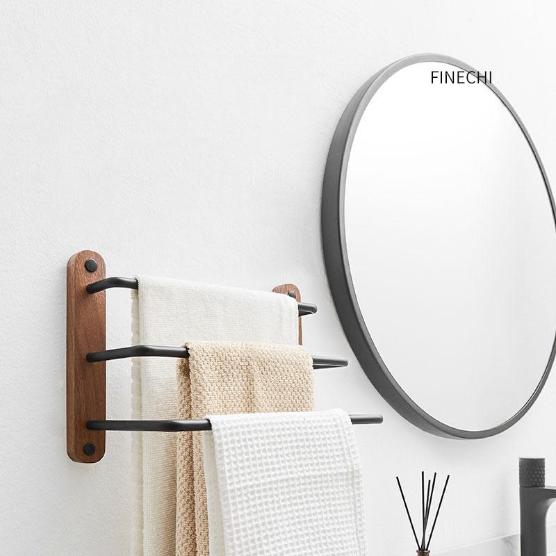 Настенный держатель для полотенец в ванную из грецкого ореха, черная алюминиевая вешалка для полотенец, держатель для полотенец в туалет, 30-50 см, многоярусная вешалка