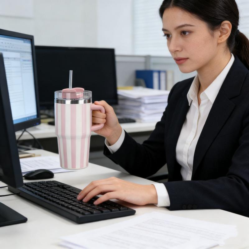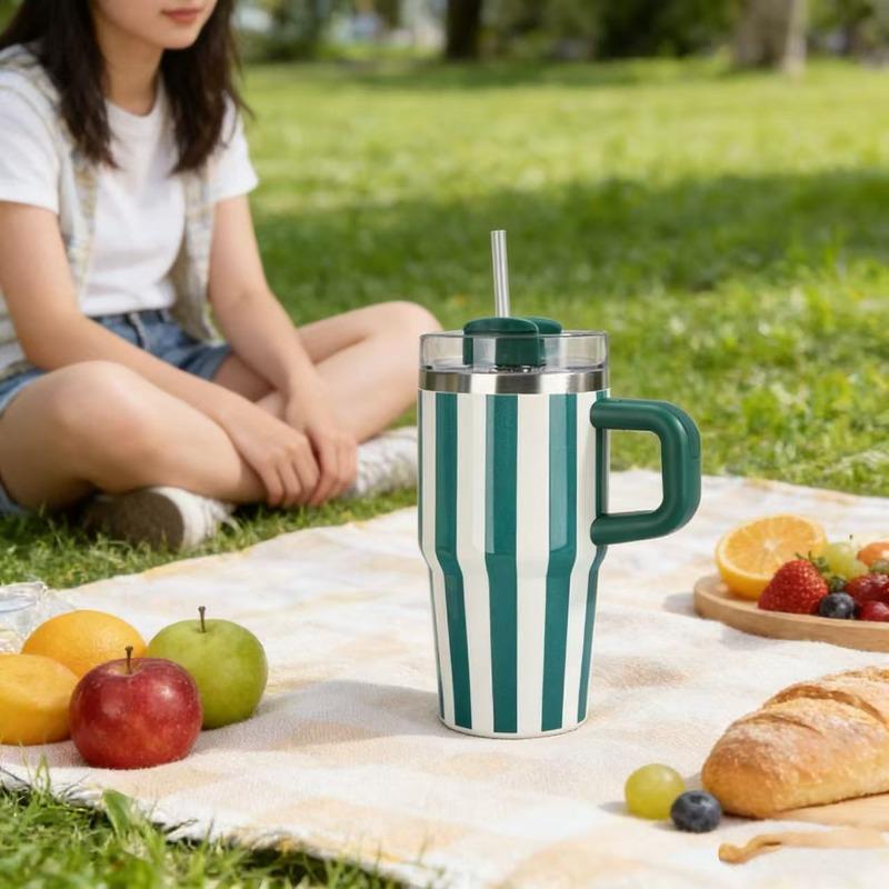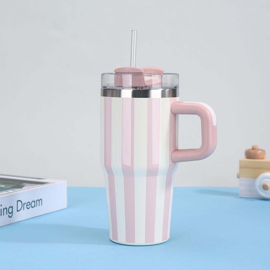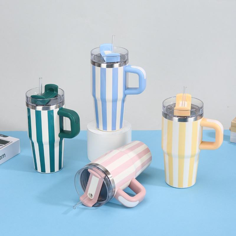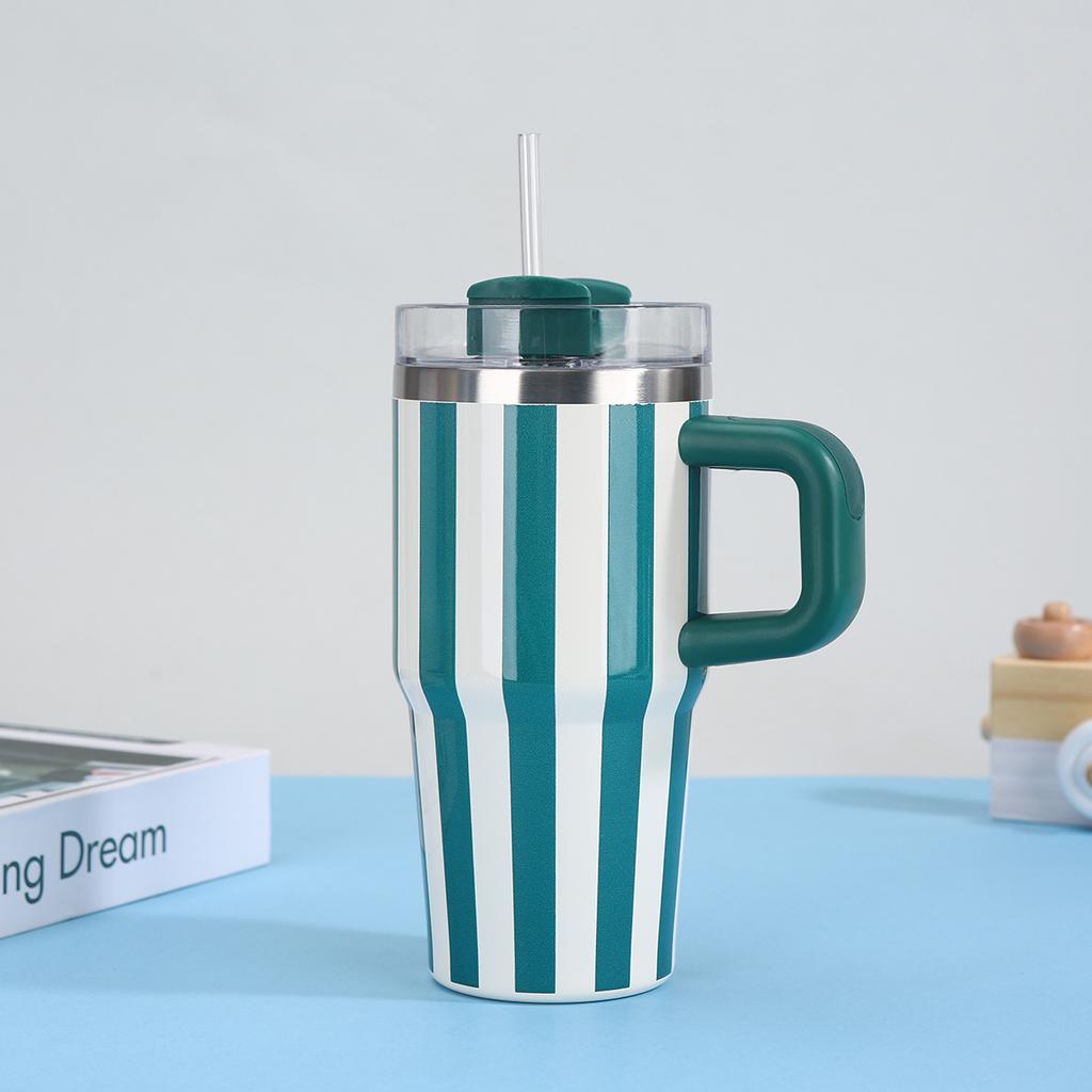 Portable cup with handle and straw cover, stainless steel, cold insulation, vacuum insulation, car travel cup, water flavor 20OZ