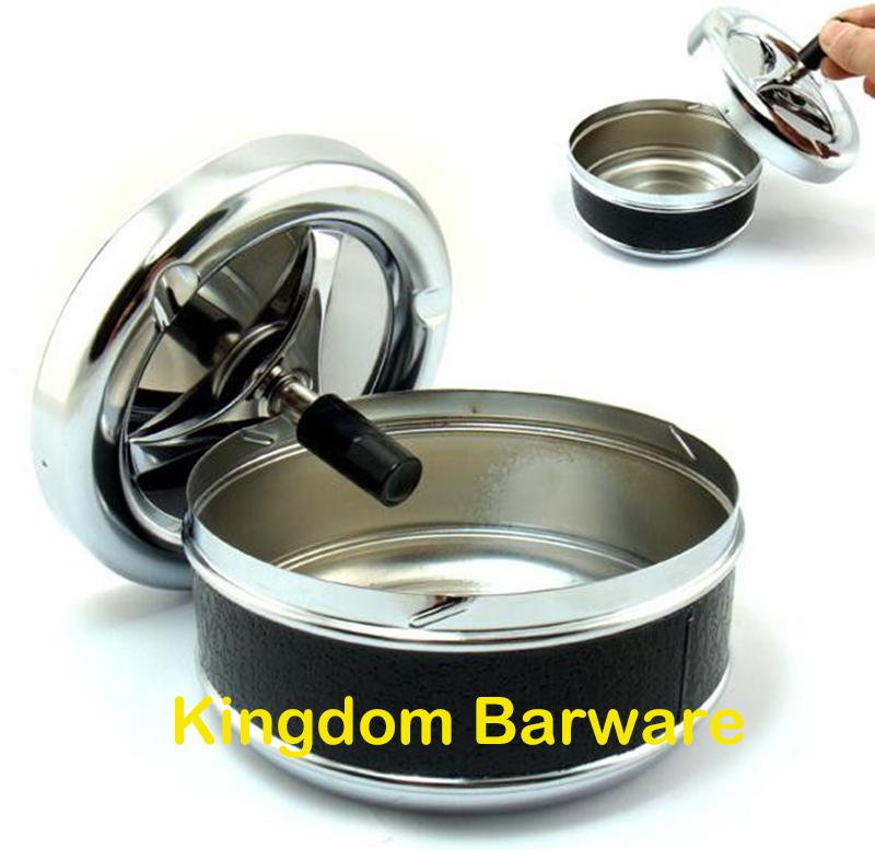 Round Push Down Ashtray Metal SpinningTray Easy to Clean Black Color Air Tight Bar Accessories — купить товар онлайн с бесплатной доставкой по всему миру!