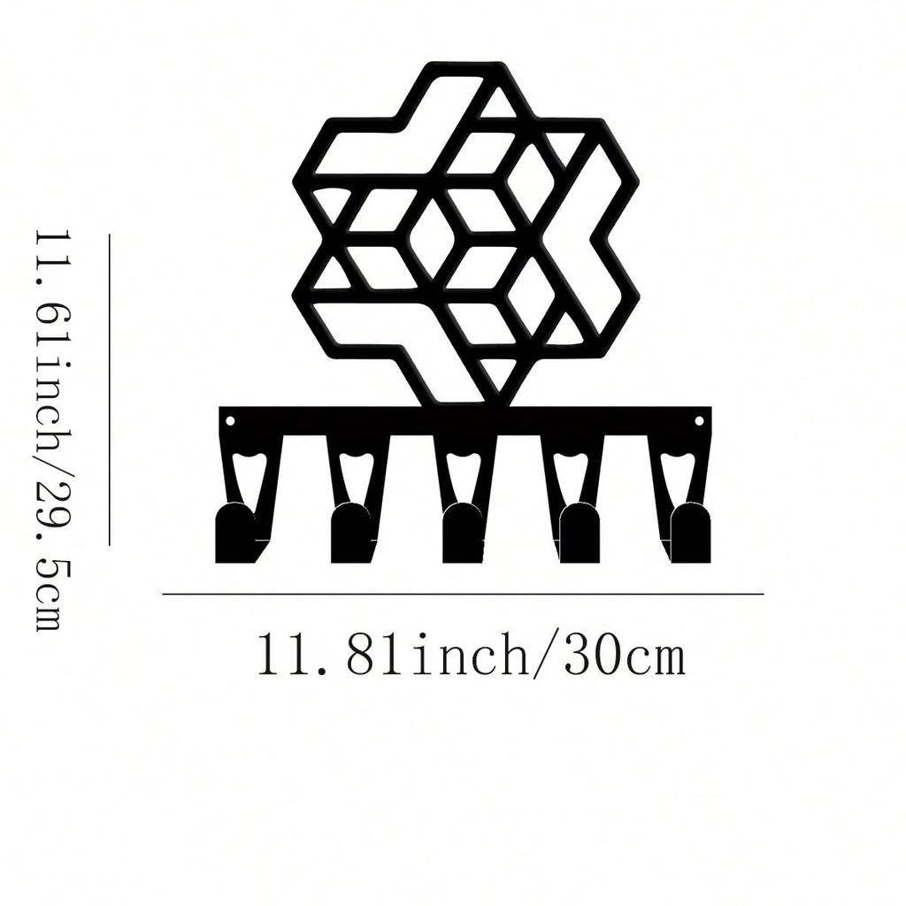 Modern Hexagon Wall Mounted Key Holder with 5 Hooks, Forged Iron Craft Geometric Entryway Decor