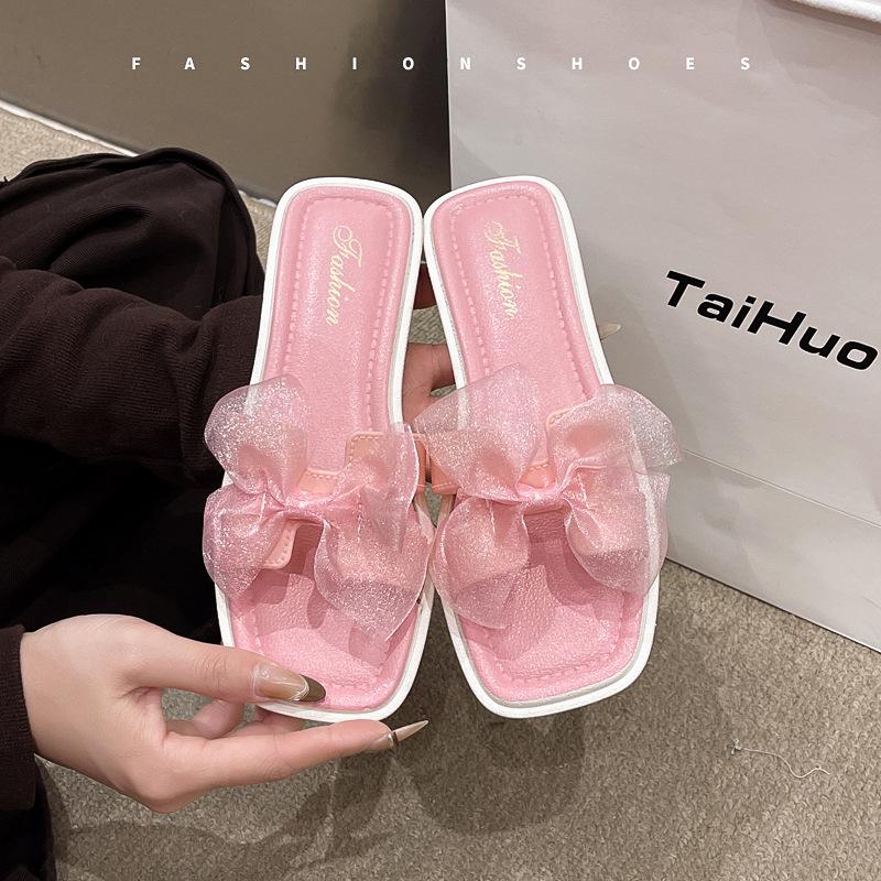 Летние сандалии в сказочном стиле для детей - Женские корейские шлепанцы с квадратным носком, на плоской подошве, для пляжа — купить товар онлайн с бесплатной доставкой по всему миру!