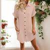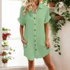 Модное женское повседневное платье средней длины с коротким рукавом, свободное, на пуговицах, цветное