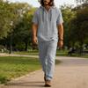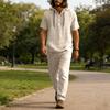 Мужской повседневный льняной комплект, Рубашка на пуговицах, Брюки с эластичным поясом и кулиской, Свободные, Удобный комплект из двух предметов