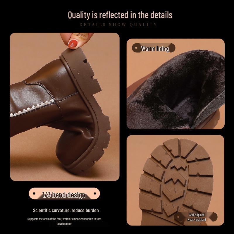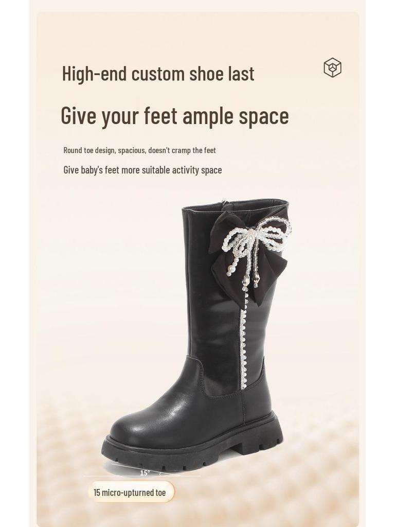 Wuma Winter 2025 Girls' Long Boots - Velvet Pearl, Cotton Leather