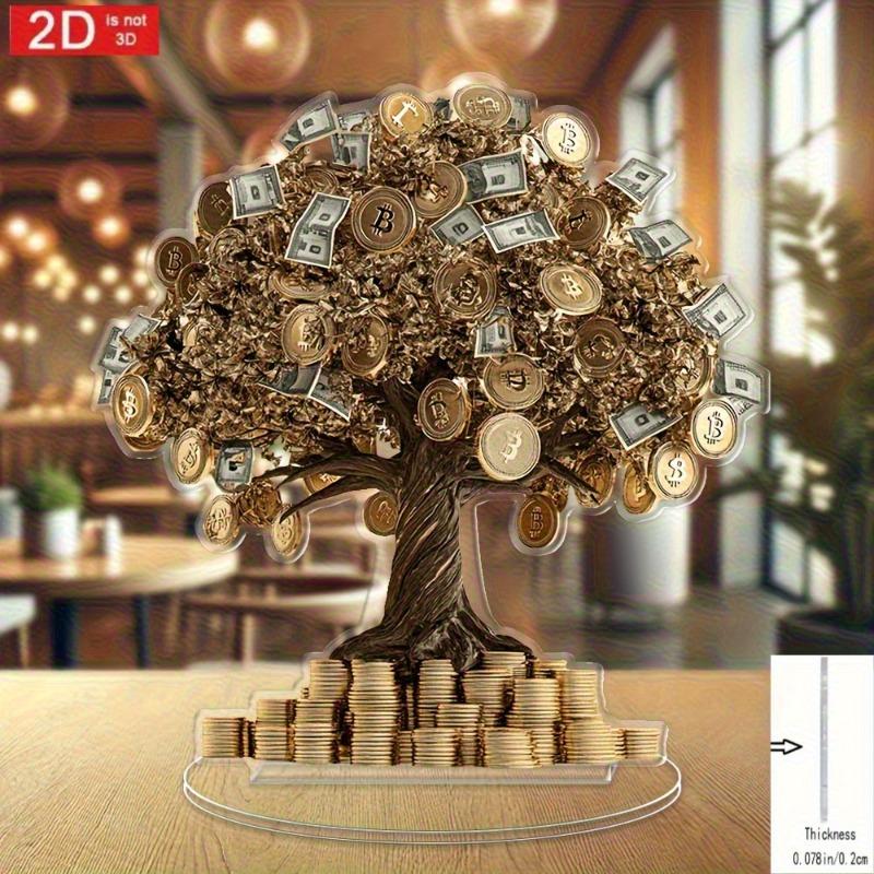 2D Flat Acrylic Money Tree Desktop Decoration, Home Decor Plaque Hanging Wall Art Decorative Garden Decoration for Room Door Signs Hanging Square Livi