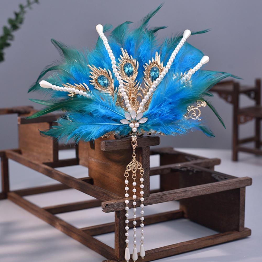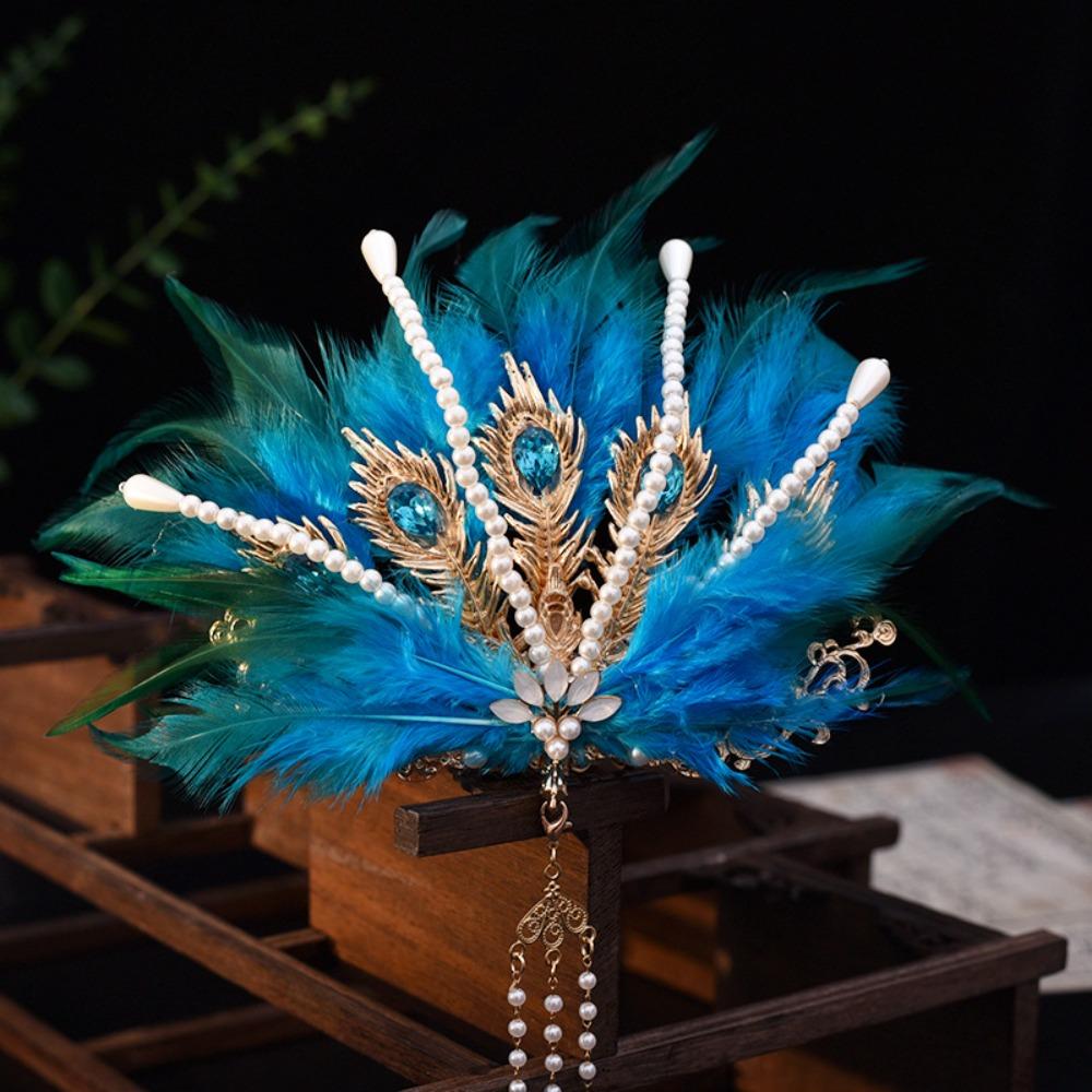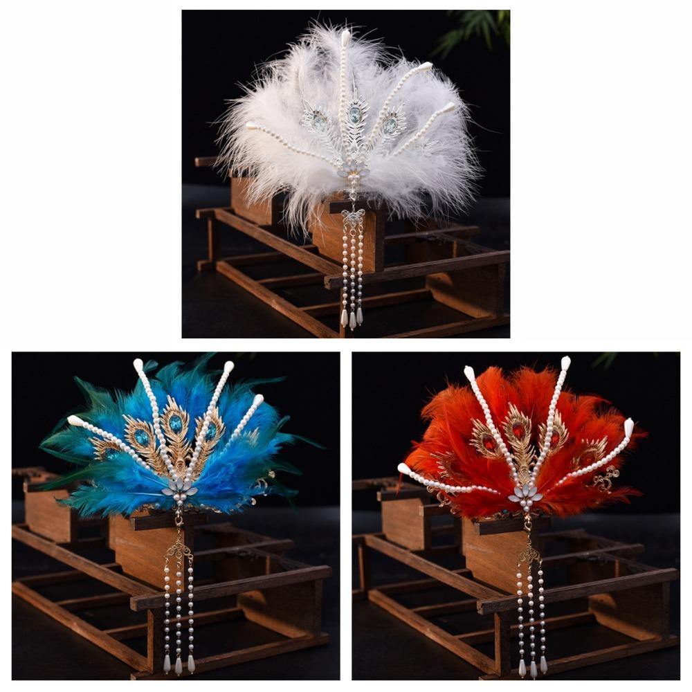 Фея китайская ханьфу волос корона винтажная тиара из перьев пери со стразами феникс диадему мальчики/девочки