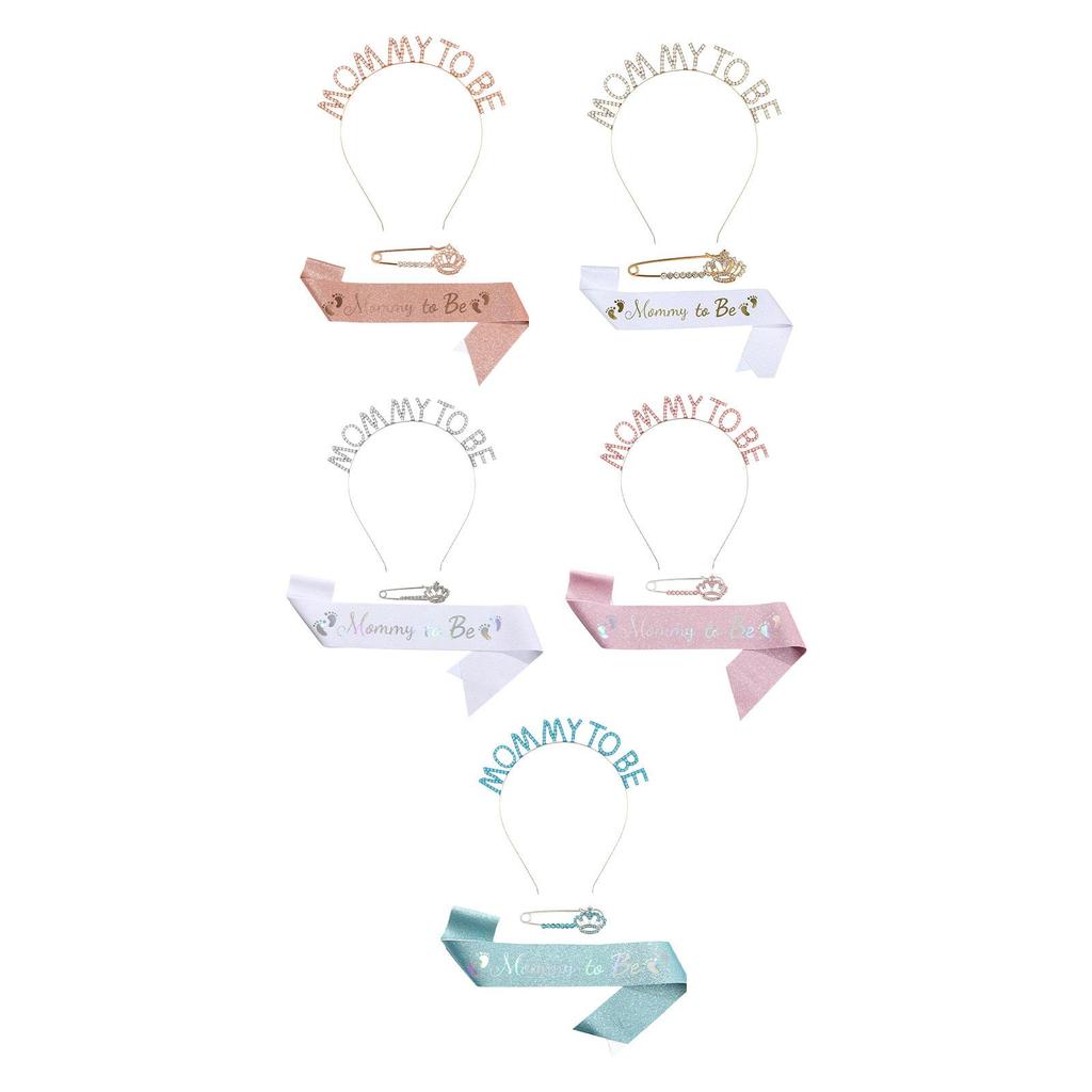 Mommy to Be Sash Set Tiara Headband Sash Brooch Set for Party Supplies Celebration Boy Girl Gender Reveal Baby Shower Birthday