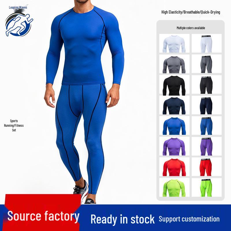 Мужской спортивный фитнес-комплект с быстрой сушкой: Дышащий топ с длинным рукавом и высокоэластичные брюки для баскетбола, бега, футбола и тренировок — купить товар онлайн с бесплатной доставкой по всему миру!