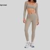 Женский трансграничный набор для йоги: Леггинсы с высокой талией и сексуальный топ с длинным рукавом для фитнеса на открытом воздухе — купить товар онлайн с бесплатной доставкой по всему миру!