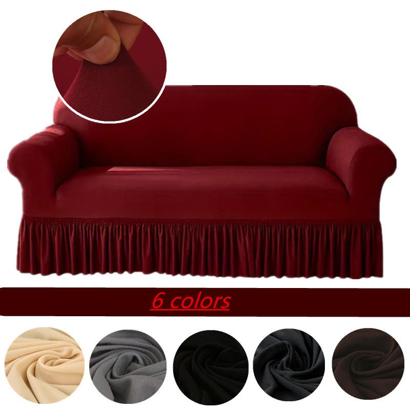 1 шт. Высокоэластичный однотонный чехол на диван для гостиной, угловой чехол на диван из спандекса с юбкой, пылезащитный, нескользящий чехол-накидка на диван