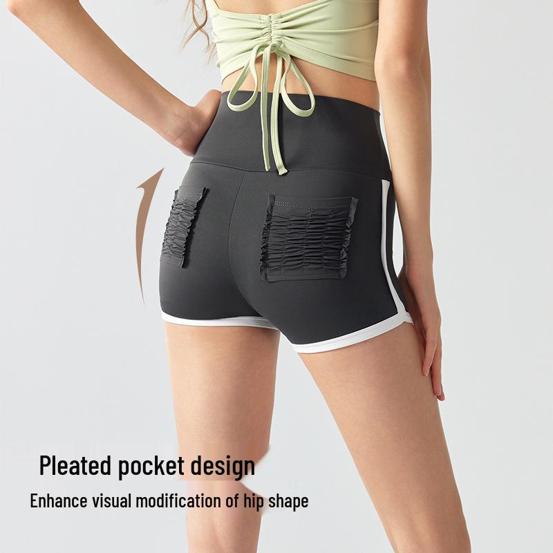 Летние женские шорты для йоги с цветовыми блоками, высокой талией и эффектом пуш-ап, с карманами, для бега, тенниса и фитнеса