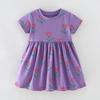 Girls' Purple Tulip Short-Sleeved Dress Baby Pure Cotton Princess Dress Kidsren's Summer Dress Knitted Skirt for Small and Medium-Sized Kidsren