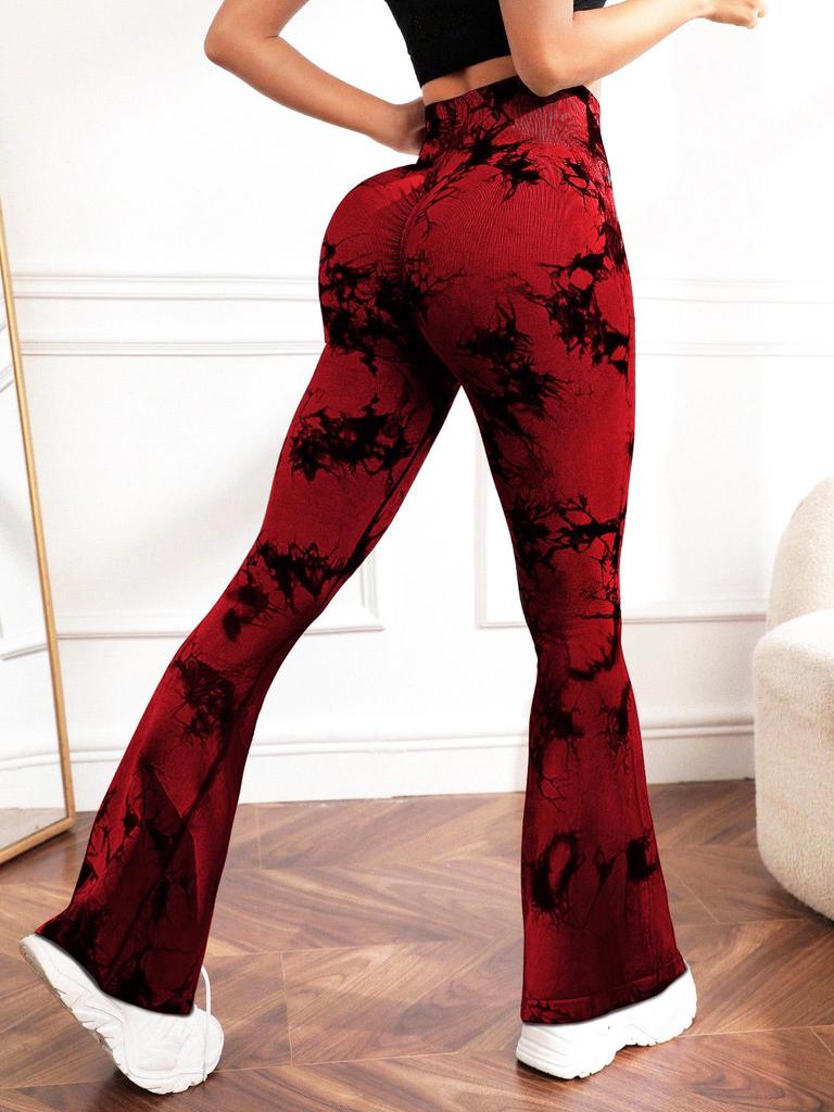Женские расклешенные йога-штаны с высокой талией и принтом тай-дай - Персиковый зад, Дышащие, Стройнящие, Широкие фитнес-леггинсы