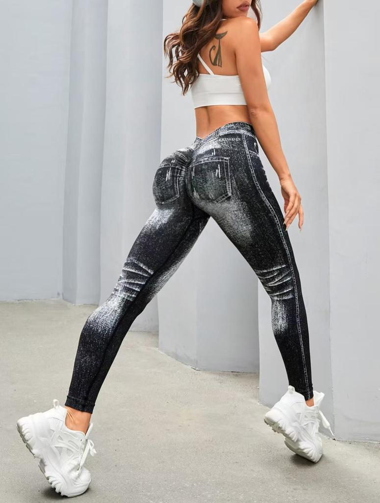 Бесшовные леггинсы для йоги с высокой талией и эффектом пуш-ап для женщин - Быстросохнущие, стройнящие, облегающие, в стиле денима, для бега и фитнеса