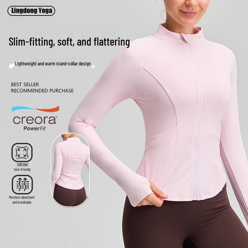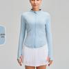 Женский корректирующий спортивный топ с длинным рукавом и воротником-стойкой - Эластичная и элегантная куртка для йоги, бега и фитнеса