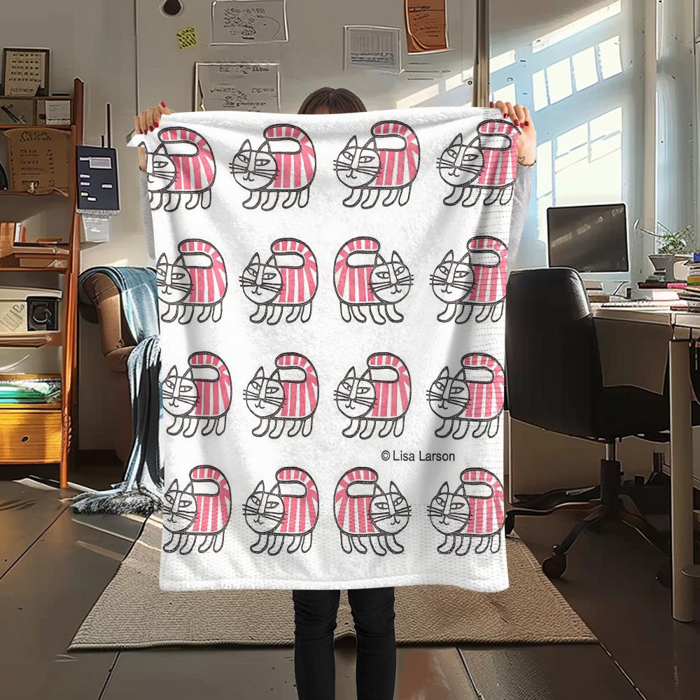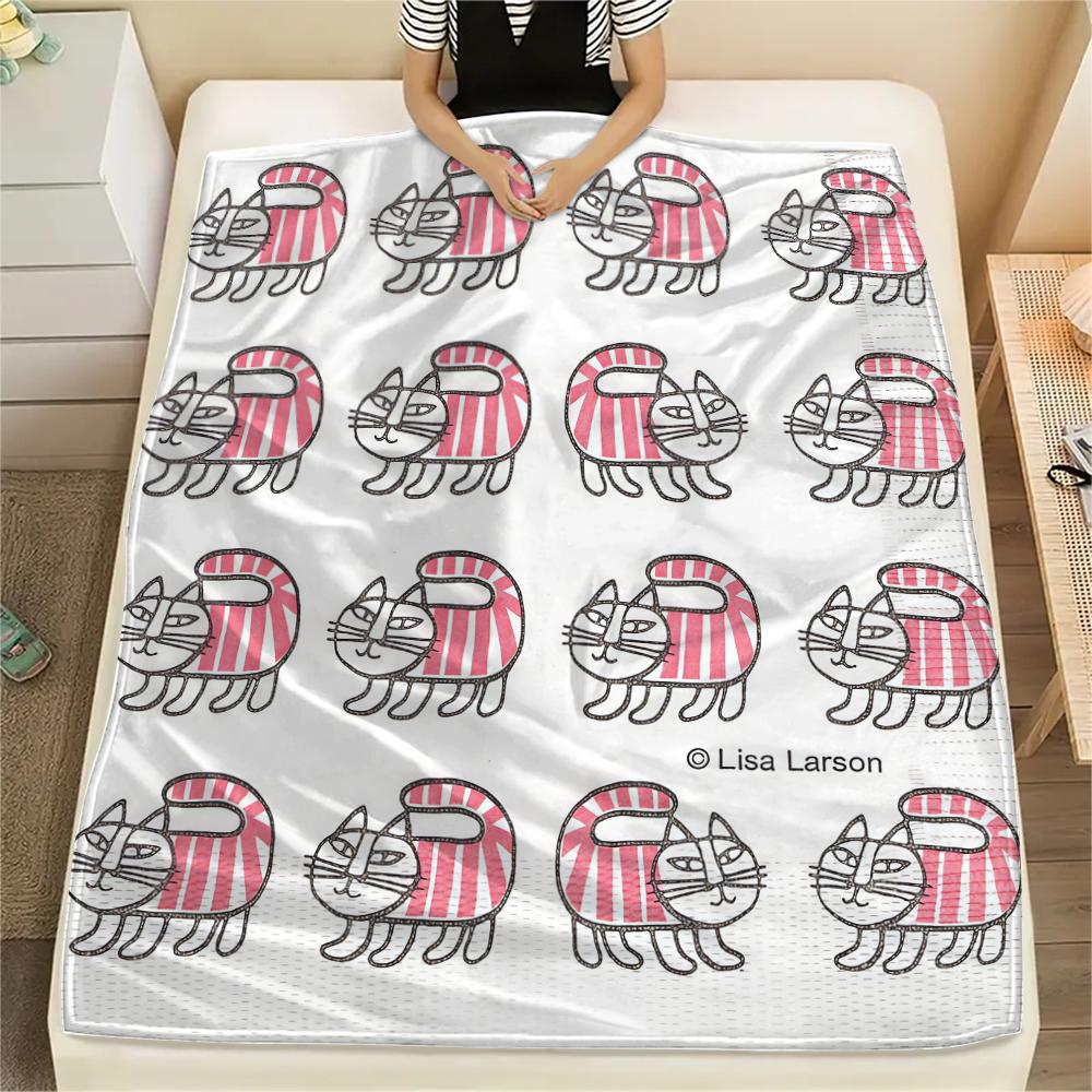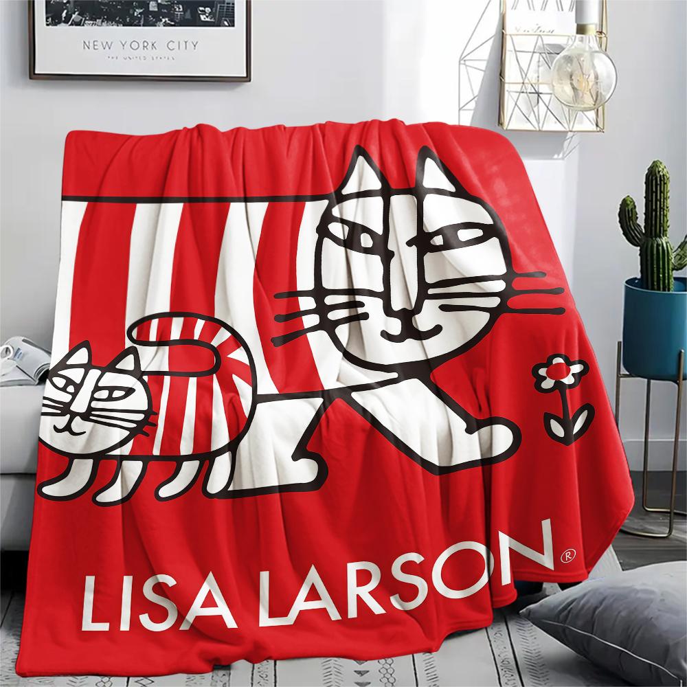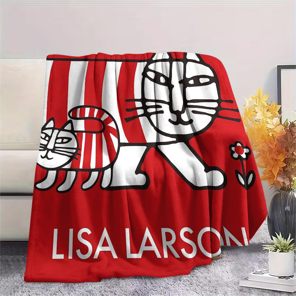 1 шт. Фланелевое одеяло с принтом Лисы Ларсон, Высокое качество, Для всех сезонов, Декор для дома, Тепло и уют, Идеально для рождественских подарков