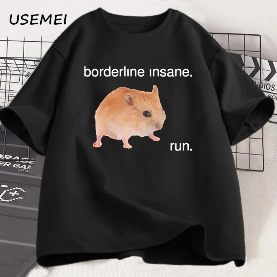 Смешная футболка с мемом про хомяка, на грани безумия, беги, графическая футболка с животным, юмористическая взрослая футболка, хлопок, футболки с коротким рукавом, мужская одежда