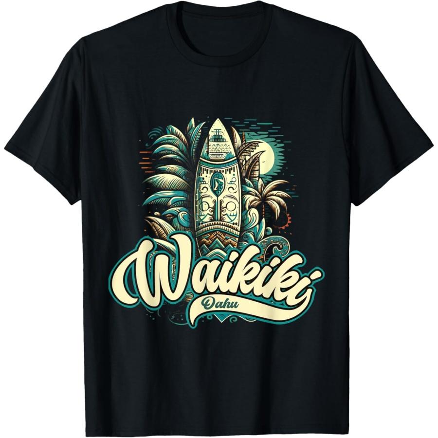 Футболка с дизайном Серфинг на пляже Вайкики, Полинезия, Гавайи для Мужчин Женщин Детей