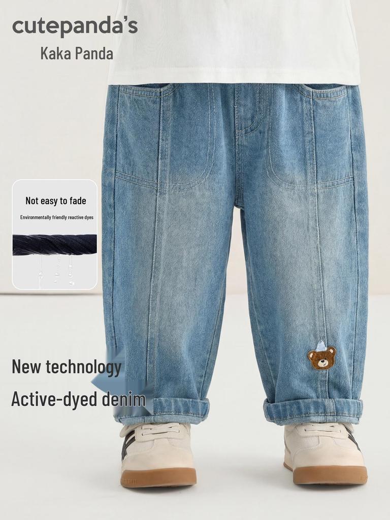 Весенние джинсы для детей Kaka Panda: Модные длинные брюки для мальчиков и девочек, идеально подходят для малышей весной и осенью.