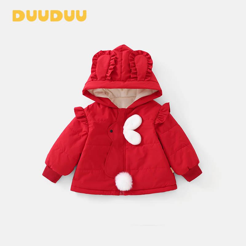 DUUDUU 2025 New Red Thickened Infant Girls' Winter Cotton Jacket Outerwear
