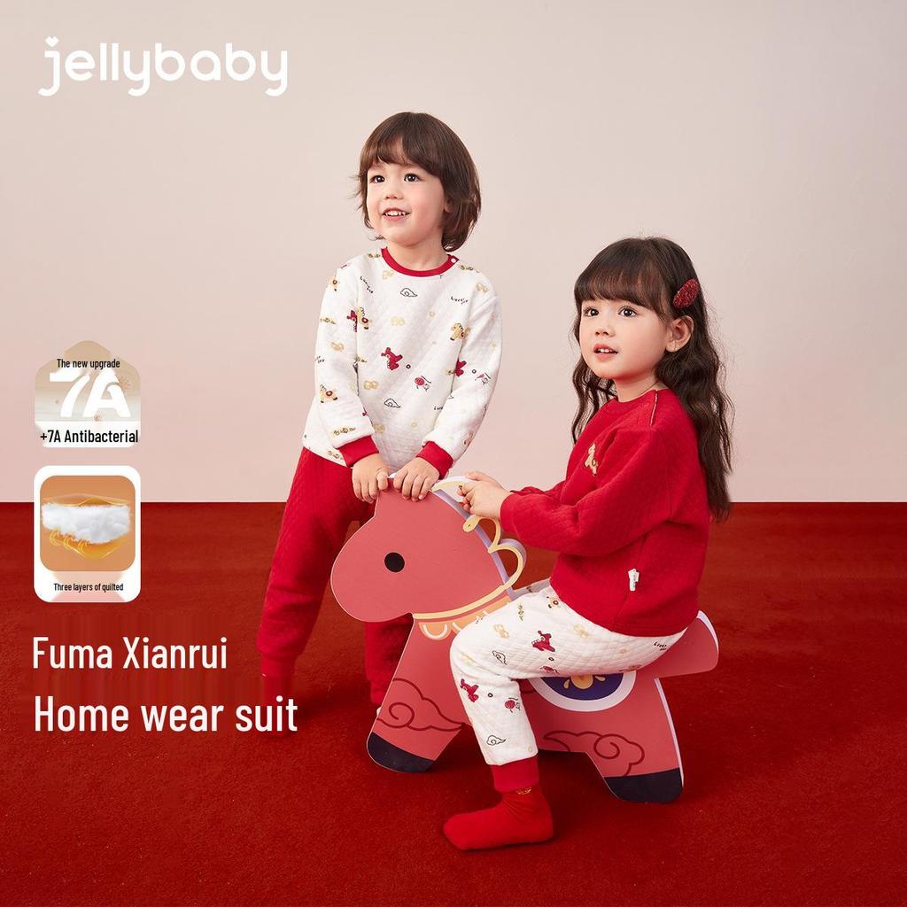 Antibacterial Quilted Children's Autumn/Winter Pajamas Set - Red Top & Pants for Boys and Girls — купить товар онлайн с бесплатной доставкой по всему миру!