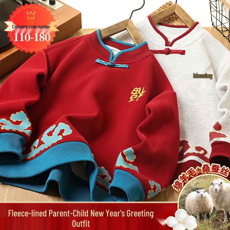 Детская зимняя толстовка с флисовой подкладкой "Год Лошади" - Праздничный теплый топ для мальчиков - Родитель-ребенок