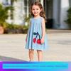 Платье для девочек Весна и Осень 2025 Новое Стильное Детское Темно-синее с Вишнями Средней Длины Повседневное Худи-Платье