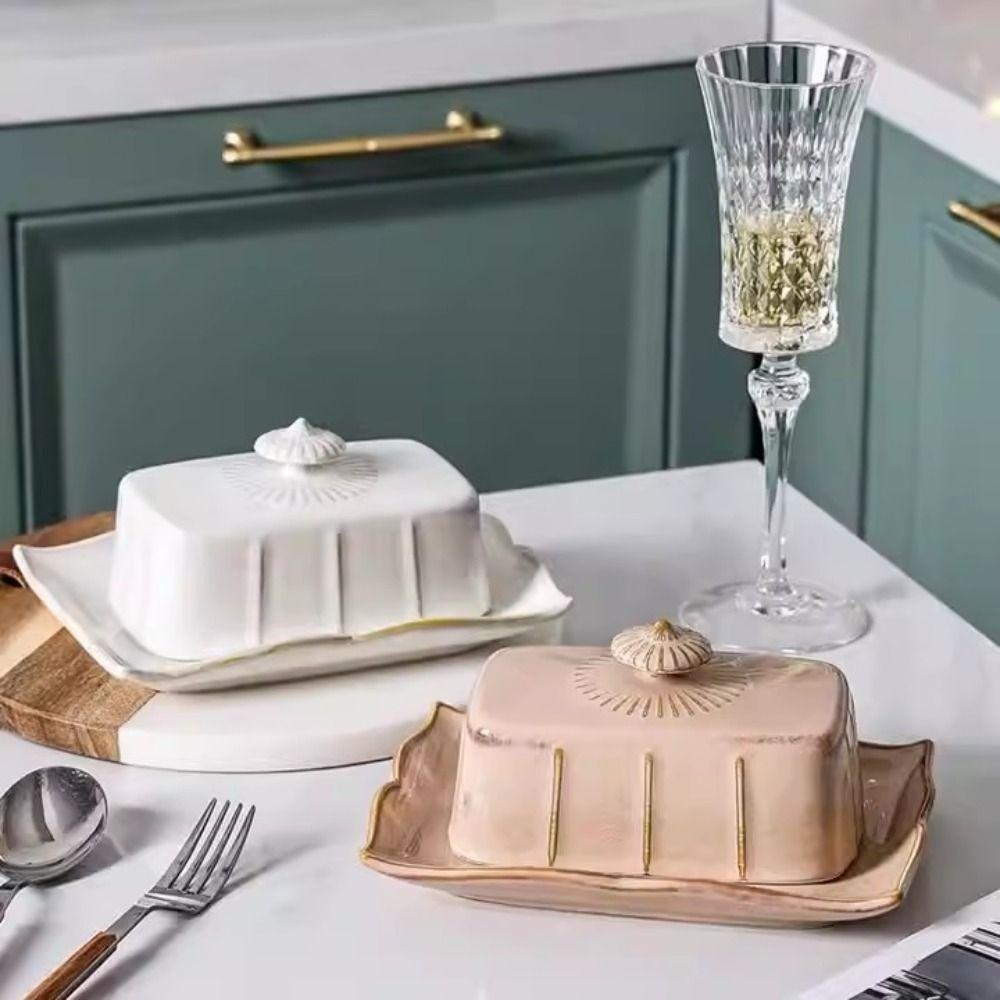 Rectangular Butter Tray Ceramic Dim Sum Dish Storage Tray for Candy Snack Dessert Fruit