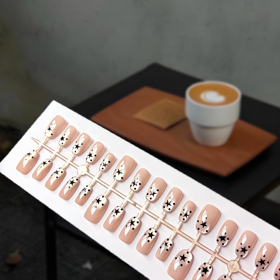 Starry Cat Eye Wearable Gel Nail Polish: Simple, Cute, and Girly Medium Short Fake Nails.