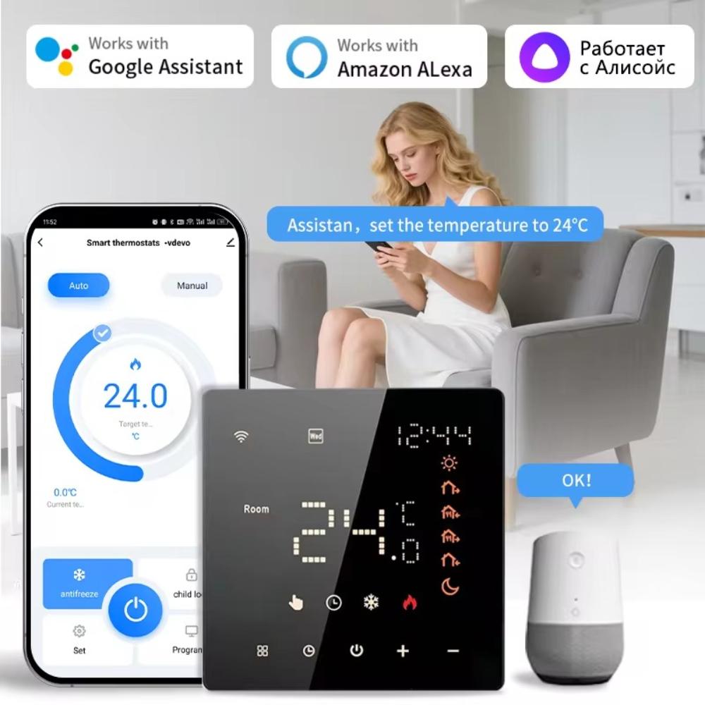 ME81H/82H WiFi Thermostat for Wall Boilers and Electric Heating - APP Remote Control with Alexa and Google Home Voice Commands
