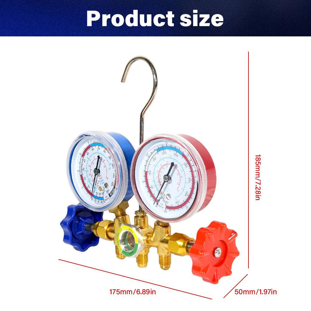 Freon R134A Refrigerant Diagnostic Manifold Gauge Set with Hose and Hook - Professional 3 Way AC Tool for R12 R22 R404A R134A