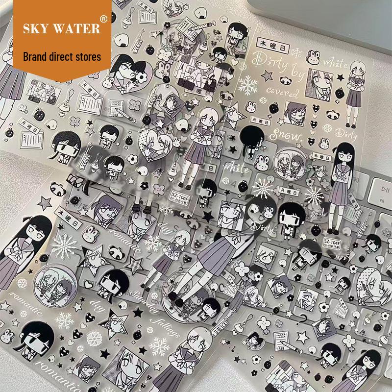 Стикеры-лайнарт «Небо Манга»: Декор для DIY-журнала, блокнота и планшета (Ч/Б) — купить товар онлайн с бесплатной доставкой по всему миру!