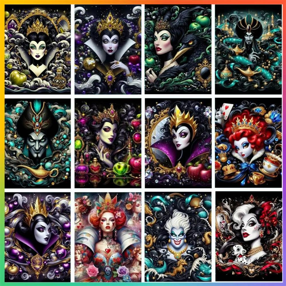 Disney Злодеи Узор Пазл Крест Печать Квадратное Искусство Алмазная Живопись 5d Стежок Мозаика Новая Коллекция Большой Размер Дети