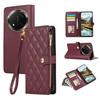 Phone Case For Honor X60 Pro 5G/X9c 5G/Magic7 Lite 5G Multi Card Slots Zipper Rhombus Leather Cover with Wrist Strap