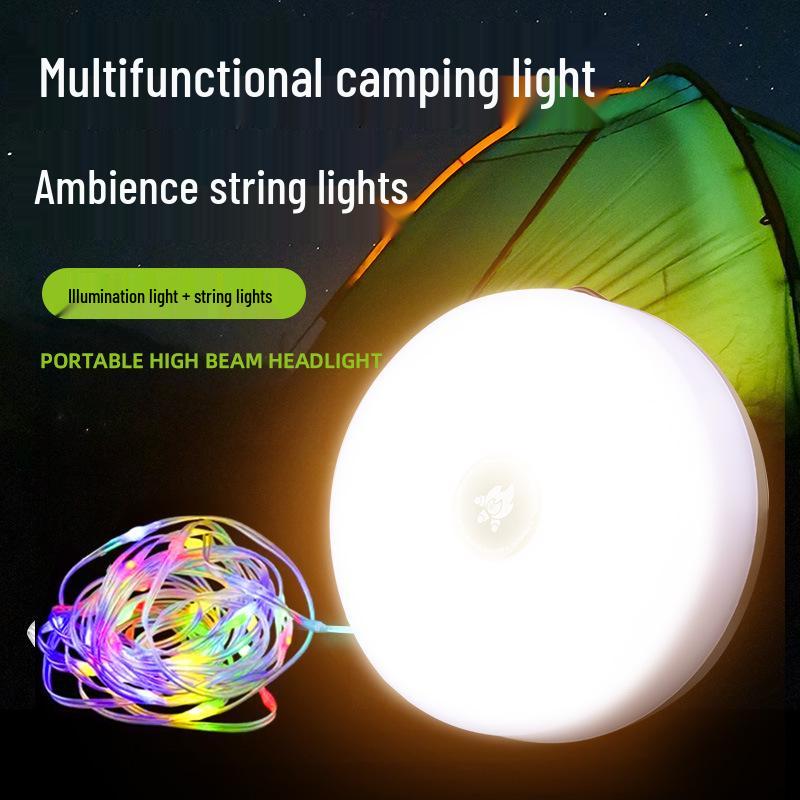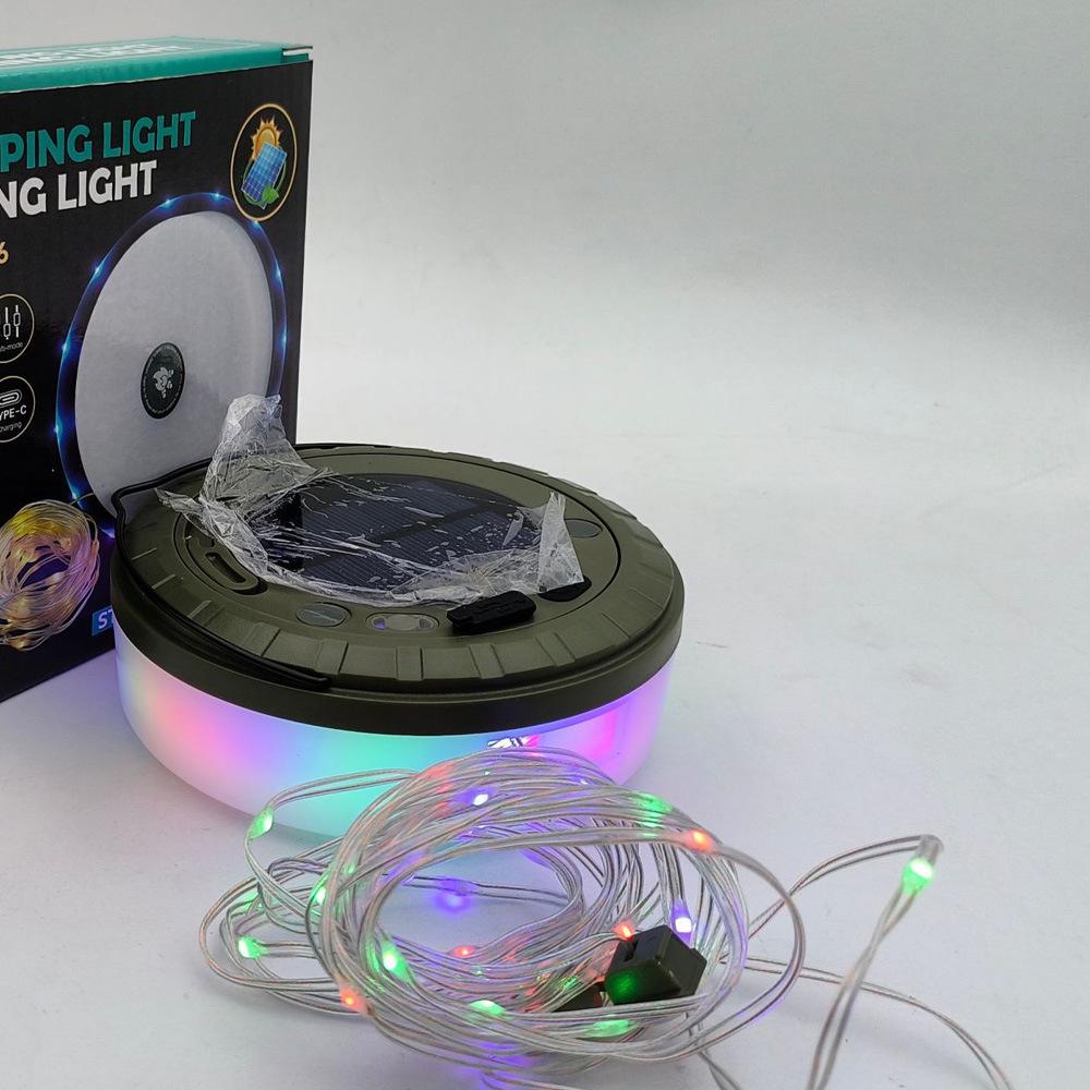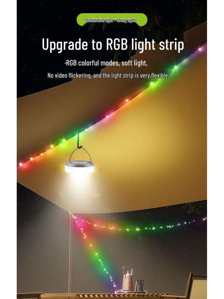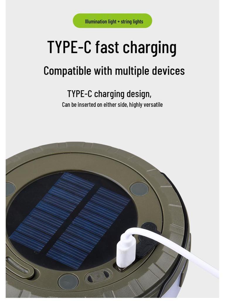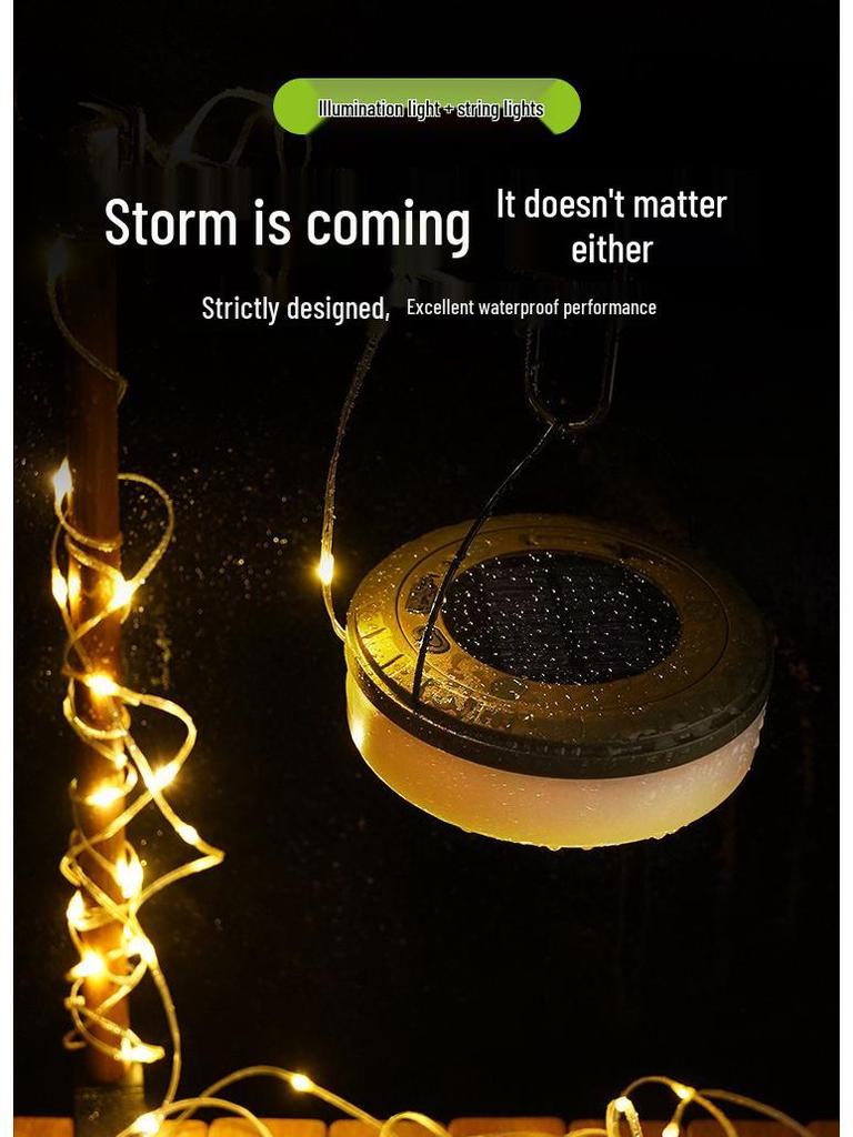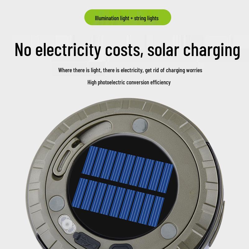 Cross-Border Rechargeable LED Solar Camping Lantern with 10m Multi-Color String Lights and Storage