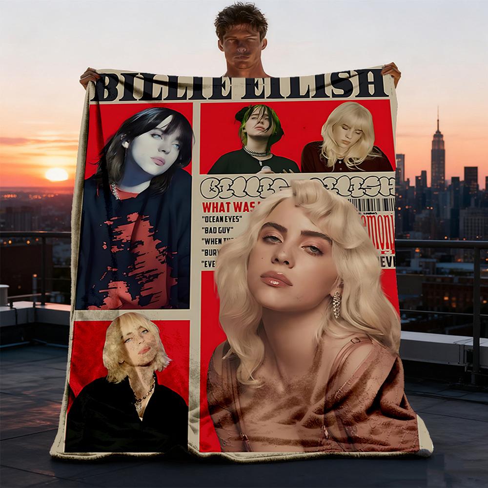 1 шт. Фланелевое одеяло Billie Eilish для улицы, Уютное и теплое, Мягкое, Игривый дизайн, Для сна, Кемпинга,
